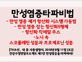 | [내몸사용설명서] 만성염증제거항산화시스템, 만성염증잡는항산화5형제성분, 항산화칵테일주스, 노니 속 스코폴레틴성분과 프로제로닌성분 등 (0) | 2018.08.11 |