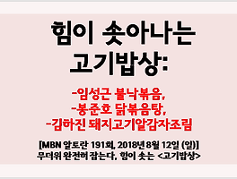 | [알토란] 힘이 솟아나는 고기밥상: 임성근 불낙볶음, 봉준호 닭볶음탕, 김하진 돼지고기알감자조림 (0) | 2018.08.13 |